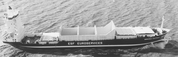 Die „BORUSSIA DORTMUND“, ein „Open Top Containerschiff“ mit 700 TEU fuhr unter der blauweißen Flagge der Reederei.